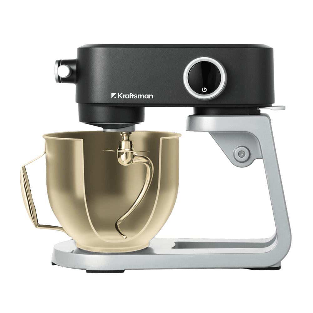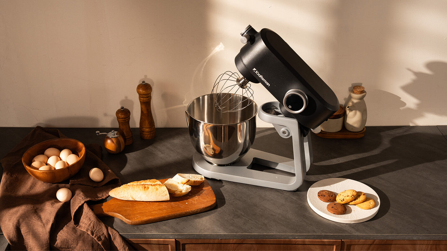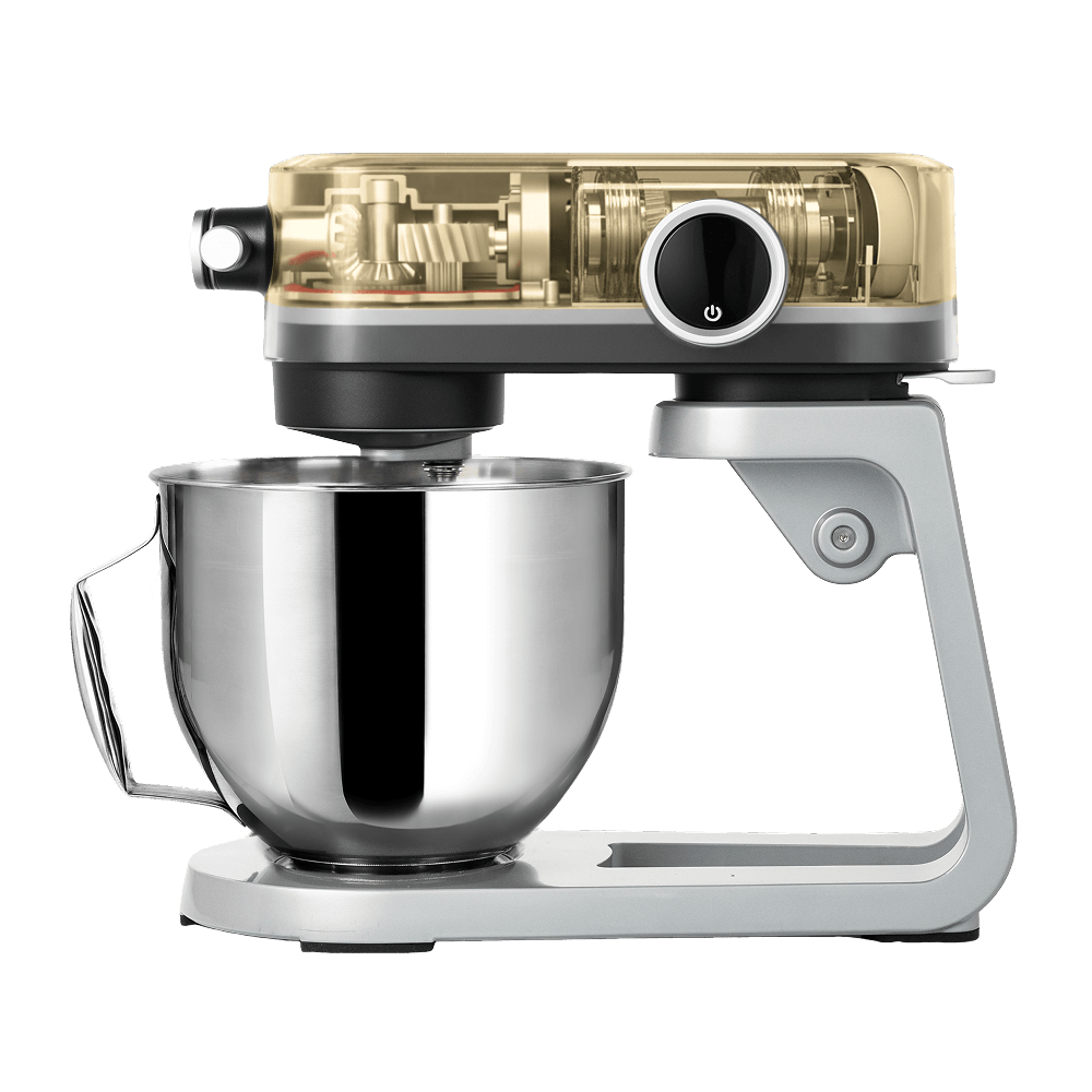 A revolutional design: sleek, streamlined, no cover-up. We believe in the power of simpleness. Kraftsman KM50 is the first stand mixer to house the motor, gearbox and PCB all in the head, unlocking full design freedom for the base and frame. This is how original L-shaped frame trims away the bulky base.